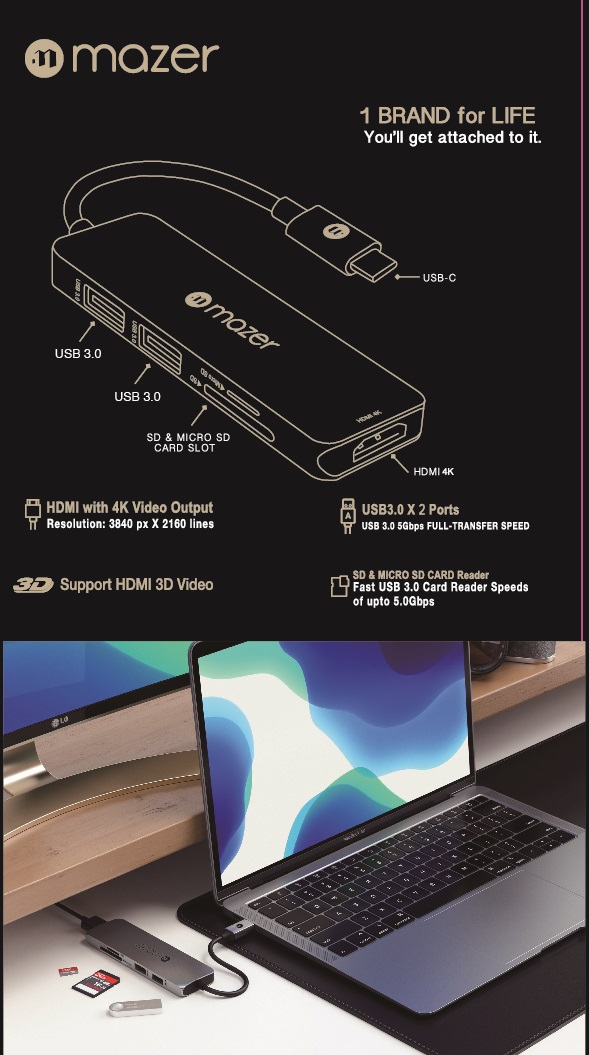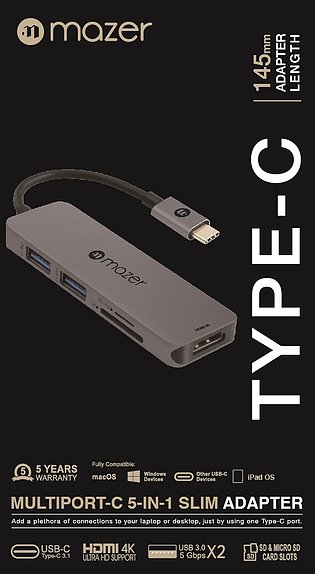 Cổng Chuyển Đổi Mazer Multiport-C 5 in 1 Slim Adapter (M-UC2MULTI303)